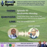 It's the layman versus many lawyers' episodes. The questions on land-related matters will be answered by Mbuthia Mwangi a lawyer in Conveyancing and Real Estate Law.